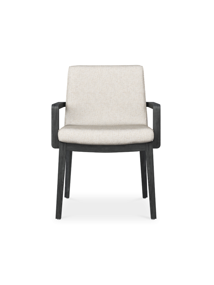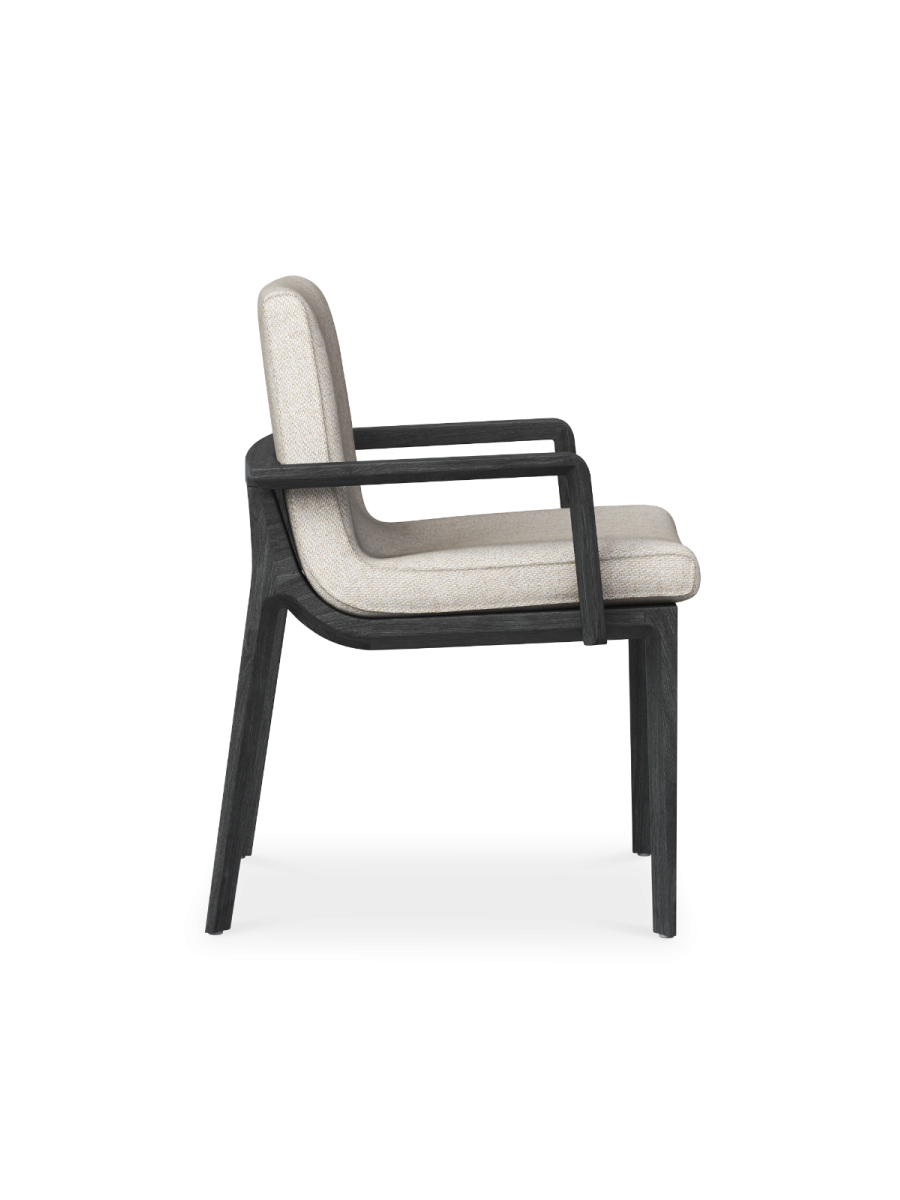 Generous seats incites a relaxing experience, Carin offers an ideal balance between comfort and posture, making the chair perfect for those long period of sitting. Black brushed is added to the natural teak material, layer by layer, exuding subtle luxury and refinement. The cushion gracing back and seat without breaking, ultimately comforting. The chair explores the contrast between soft and hard, perfect balance for multiple environment layout.